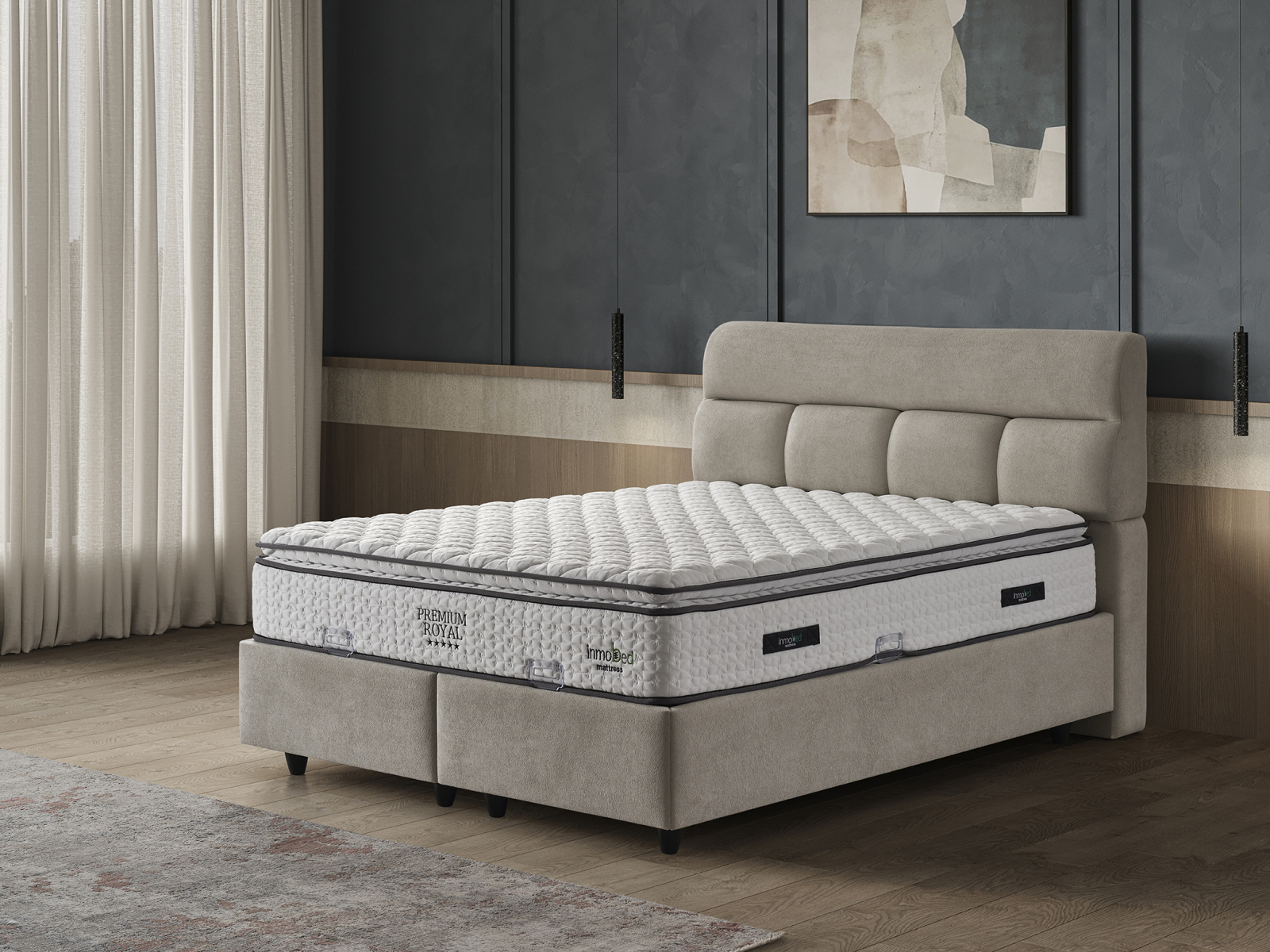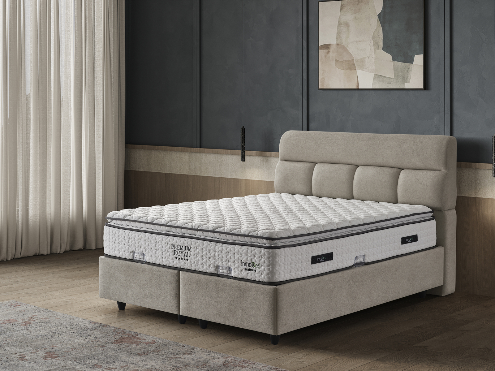 Patul Tapitat Premium Royal de la Mobila Star Design este o piesă de mobilier elegantă și funcțională, concepută pentru a îmbunătăți confortul și organizarea dormitorului dumneavoastră.
