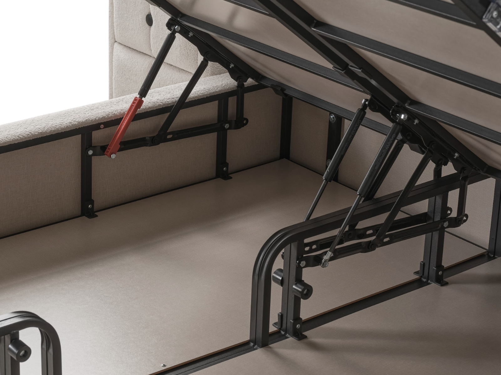 Spațiu generos de depozitare: Echipat cu un compartiment amplu sub somieră, ideal pentru păstrarea lenjeriei, pernelor sau altor obiecte, menținând astfel ordinea în dormitor.