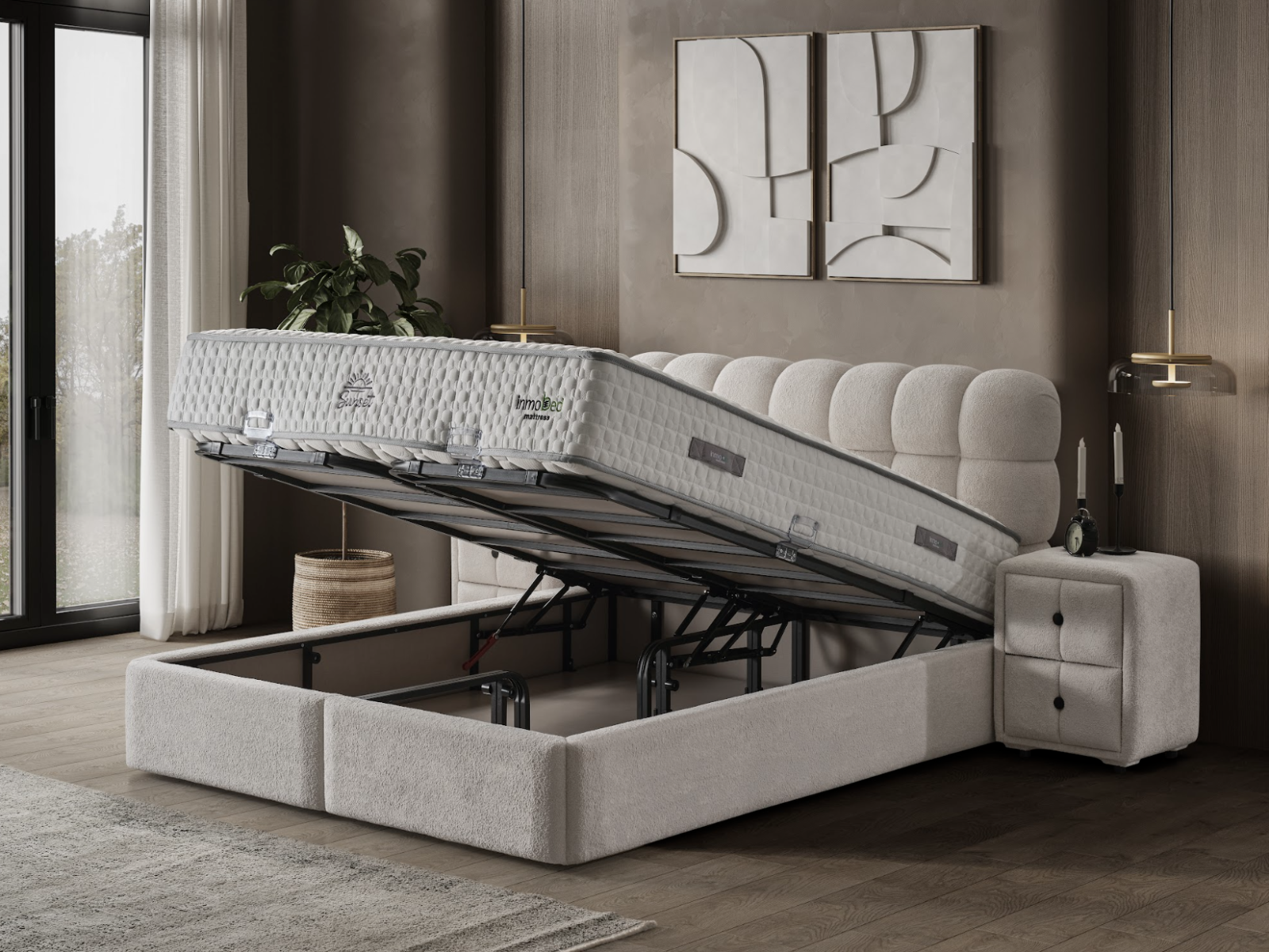 Prețul se aplică exclusiv patului, fără noptiere, saltea sau obiectele de decor.