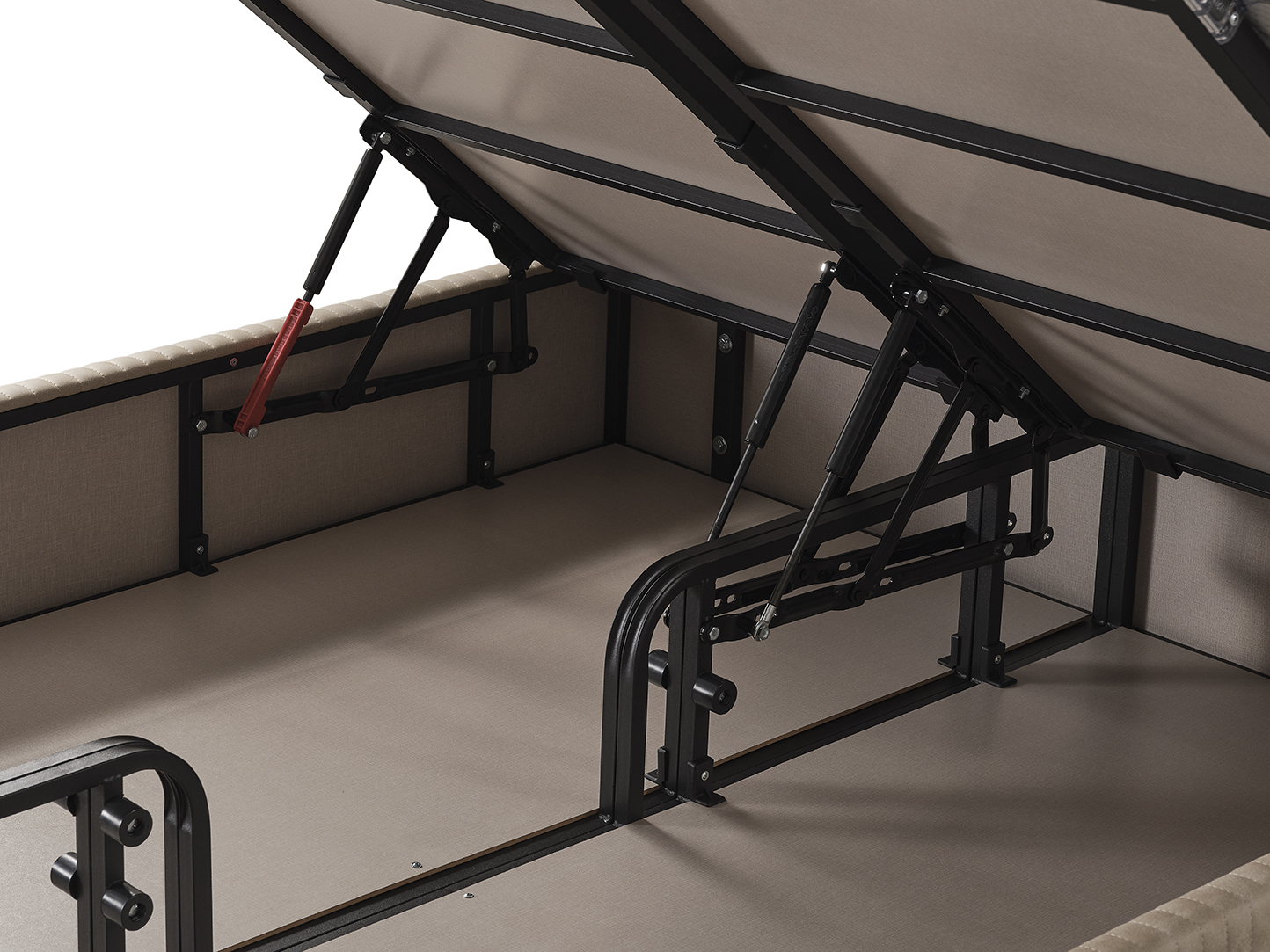 Spațiu generos de depozitare: Echipat cu un compartiment amplu sub somieră, ideal pentru păstrarea lenjeriei, pernelor sau altor obiecte, menținând astfel ordinea în dormitor.
